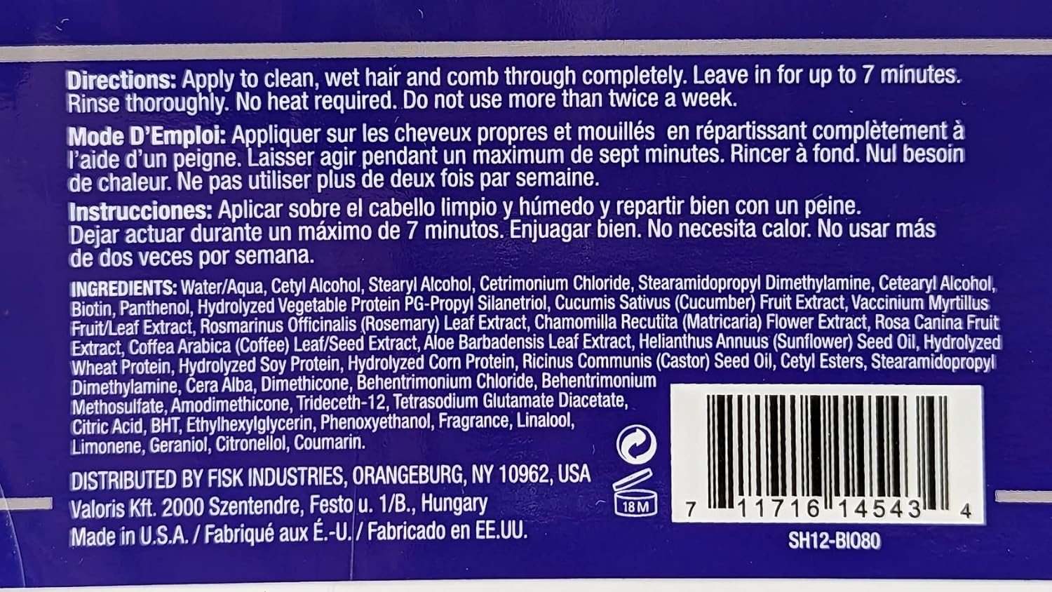 BIOTIN MASK – Sulfate Free – Paraben Free – Phtalate Free – Color Safe Formula.